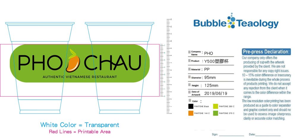 Secondly, you need to decide is what type of material you want to use for your cups. We think PP cups are the most economical for both cups and custom sealer film. PP cups will have a lower MOQ (minimum order quantity) and a lower price than PET cups. Finally, if you want to give your boba tea shop a high-end feel, you can use PET cups that are thicker than PP cups. Additionally the next time you go to a bubble tea shop, take a look at the bottom of their cups to see what kind of material they use. Usually, they will say PP or PET (PETE).